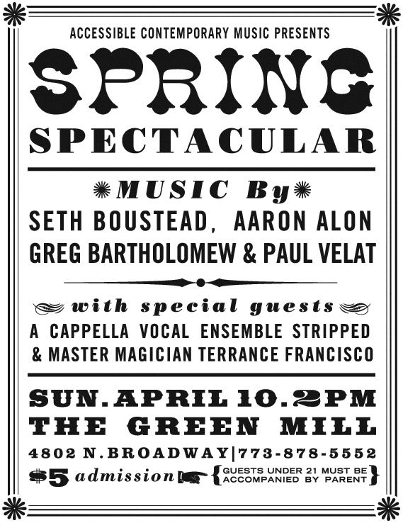 | May 14 & 15 | The Tree performed by Coriolis in Evanston and Chicago |